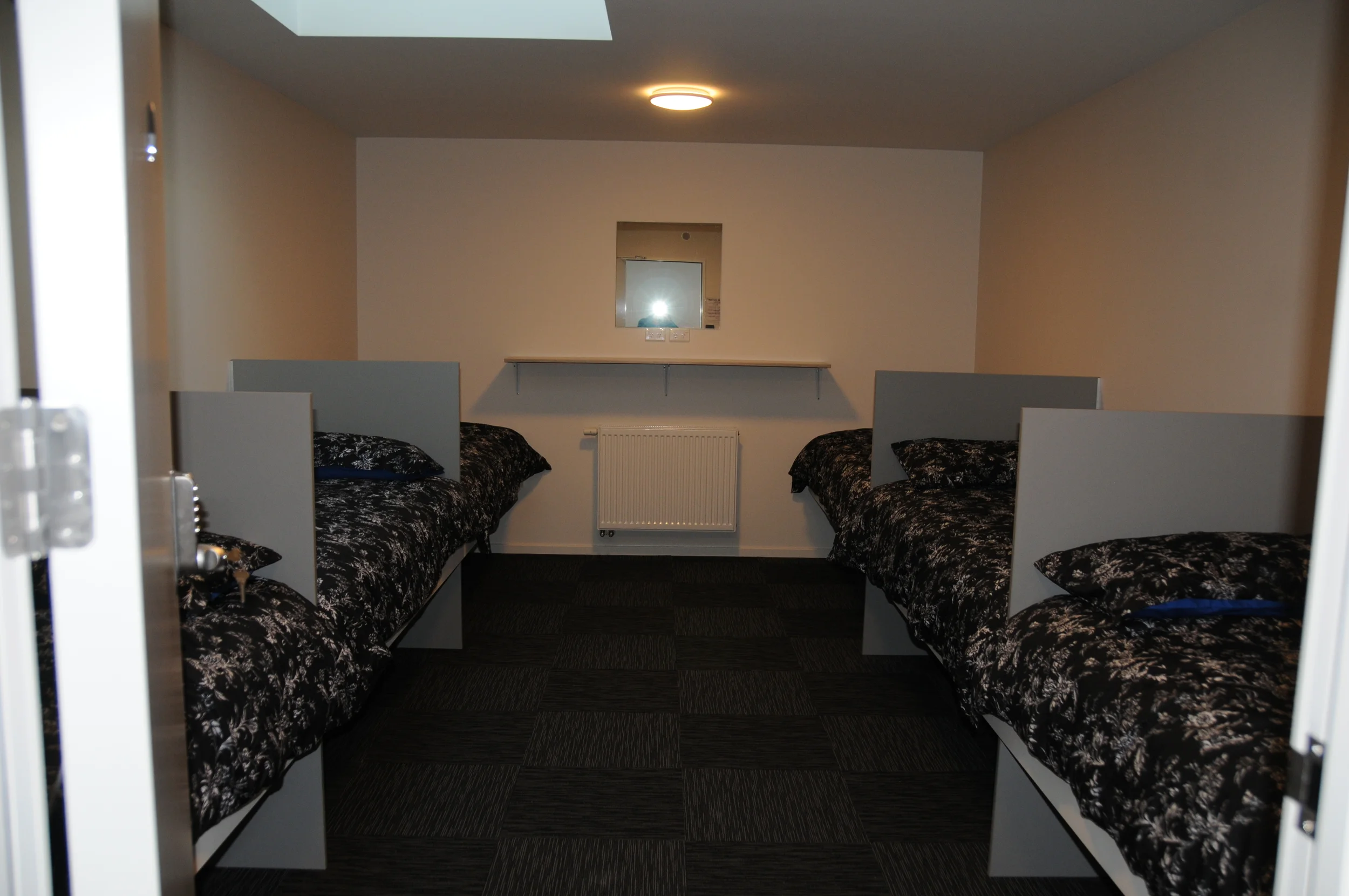 The complex is made up of three sets of 6-bed rooms and three 4-bed rooms, all single beds with no bunks, ideal for large groups, with shared living area and communal kitchen, and mens and woman's shower and toilet blocks. All beds include bed linen, towels can be hired for a small fee.
